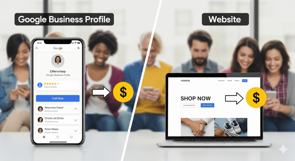 Business owners often ask: “Should I focus on my website or on my Google Business Profile (GMP)?” The answer is simple: Both are important—but in different ways. Why Google Business Profile Converts More When someone searches for your service—like “best bakery near me” or “AC service in Tiruchendur”—your Google Business Profile shows up instantly with:✔️ Phone number (easy to call you directly)✔️ Location on Google Maps (easy to visit your shop)✔️ Reviews & ratings (builds quick trust)✔️ Service list & photos (clear information) Because of this, GMP often converts faster than a website. Customers searching locally want quick action—they don’t always spend time browsing a full website. Does That Mean Websites Are Useless? Absolutely not ❌ A website is your digital shop where you can: But if you only focus on websites and social media while ignoring GMP, you’re missing out on a huge number of ready-to-buy customers. The Smart Strategy ✔️ Use Google Business Profile for quick local leads✔️ Use your website for branding, trust-building, and scaling online✔️ Connect social media + website + GMP together for maximum results Final Thoughts It’s not about choosing GMP vs Website. It’s about using both wisely. If you skip GMP and depend only on websites or social media, I can confidently say—you’re losing a lot of clients every day